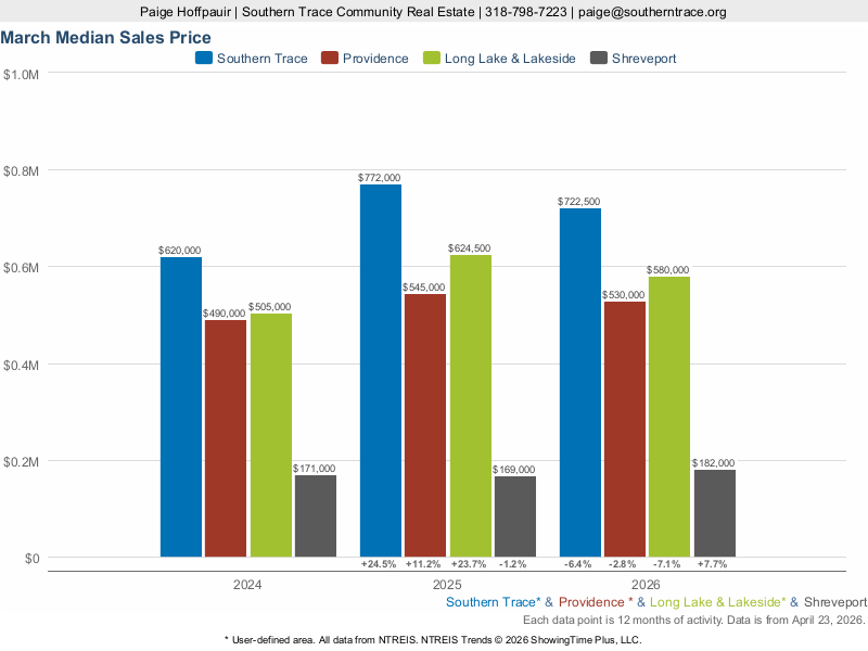 3 Year Median Sales | Southern Trace, Provenance, LongLake/Lakeside, All Shreveport